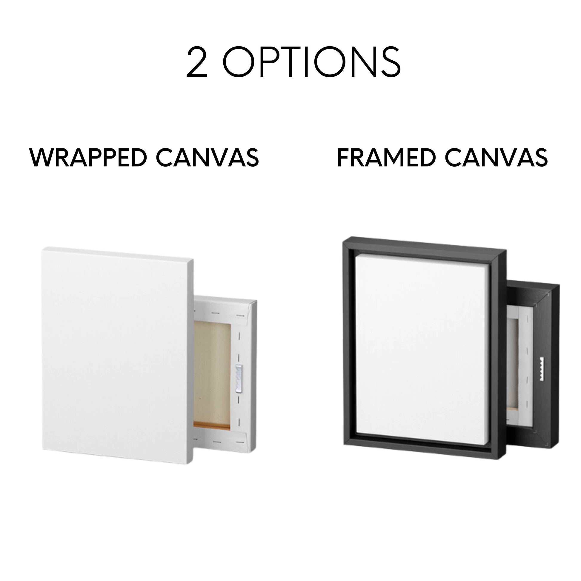 • Frame: Choice of black frame or just wrapped canvas available.